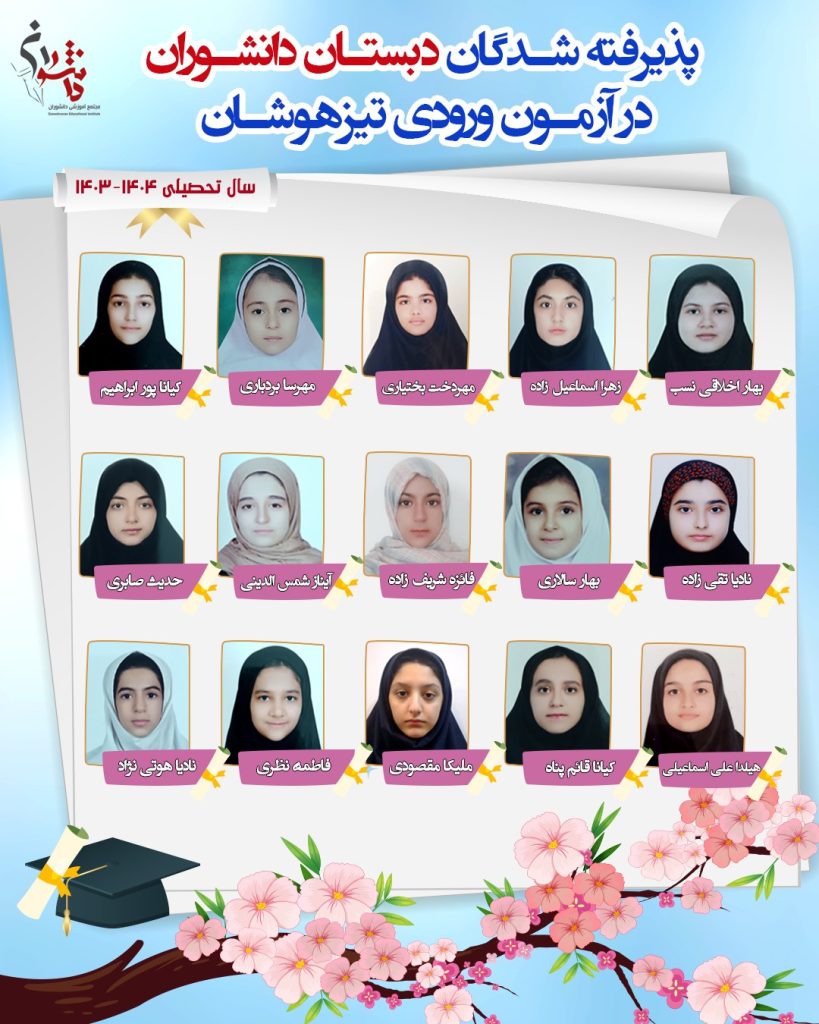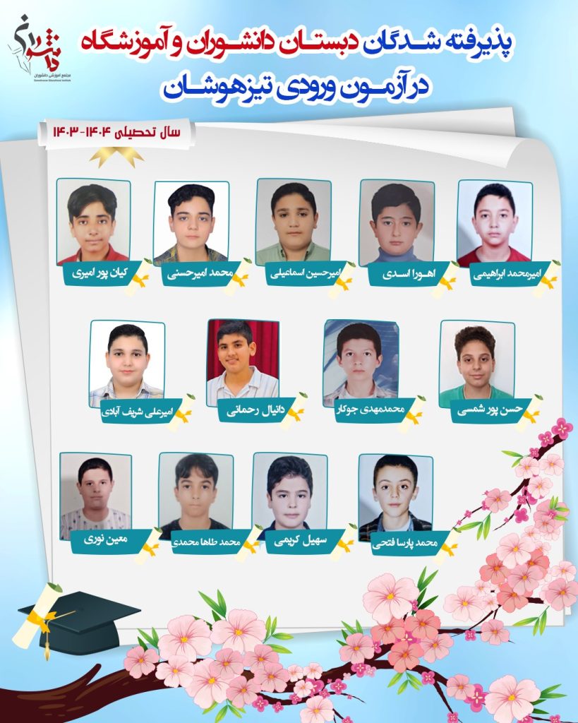 افتخاری دیگر برای مجتمع دانشوران با افتخار، موفقیت درخشان دانش آموزان عزیزمان را در آزمون مدارس استعدادهای درخشان تبریک می گوییم.